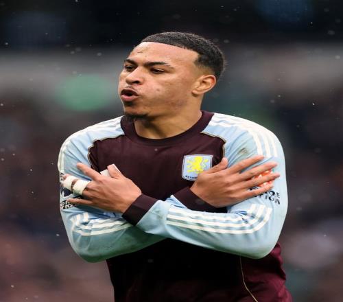 雷速体育10月19日宣 正在进行的英超第八轮,托特纳姆热刺对阵阿斯顿维拉的比赛中,比赛第38分钟,维拉队的摩根·罗杰斯远射破门,帮助阿斯顿维拉1-1扳平场上比分。进球后,罗杰斯做出了标志性的COLD庆祝动作。